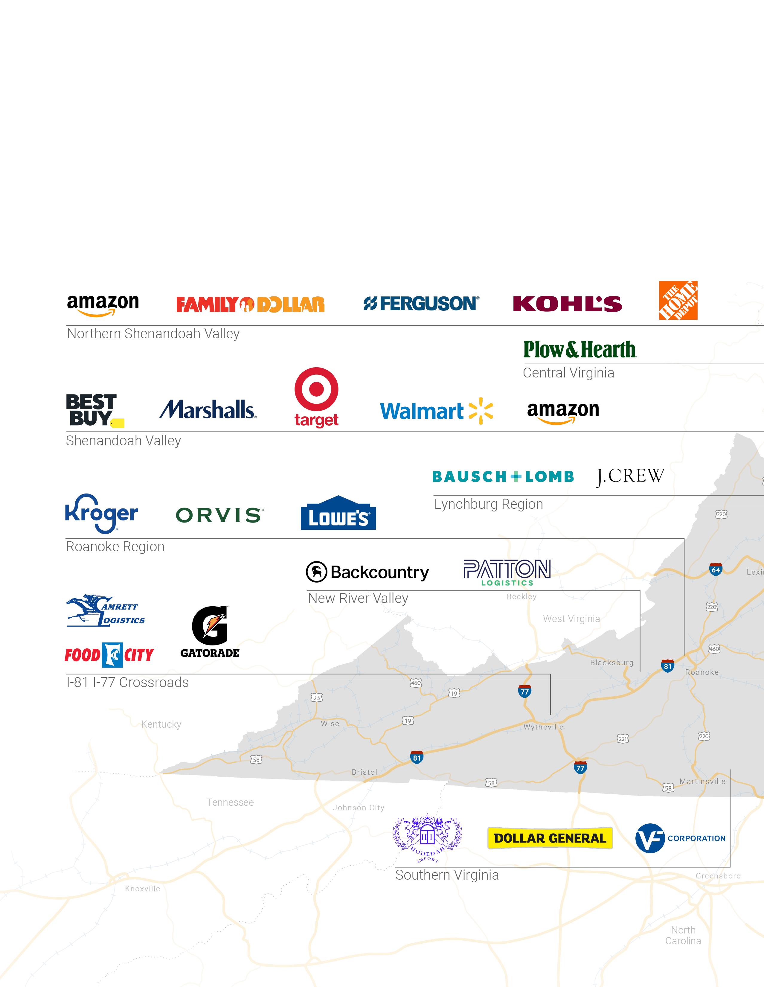 The Commonwealth of Virginia is one of North America’s premier supply chain destinations. In the past decade, over 200 supply chain companies — including Fortune 500 retailers (e.g., Amazon, Walmart, Dollar Tree, Walgreens, AutoZone, Lowe’s, and Performance Food Group) and major logistics companies (e.g., DHL, Patton Logistics, InterChange Group, Lineage Logistics, FedEx, and CMA CGM Group) — have been attracted to Virginia by its combination of strategic location, world-class infrastructure, highly ranked business climate, top-ranked and abundant talent, and innovative supply chain ecosystem.