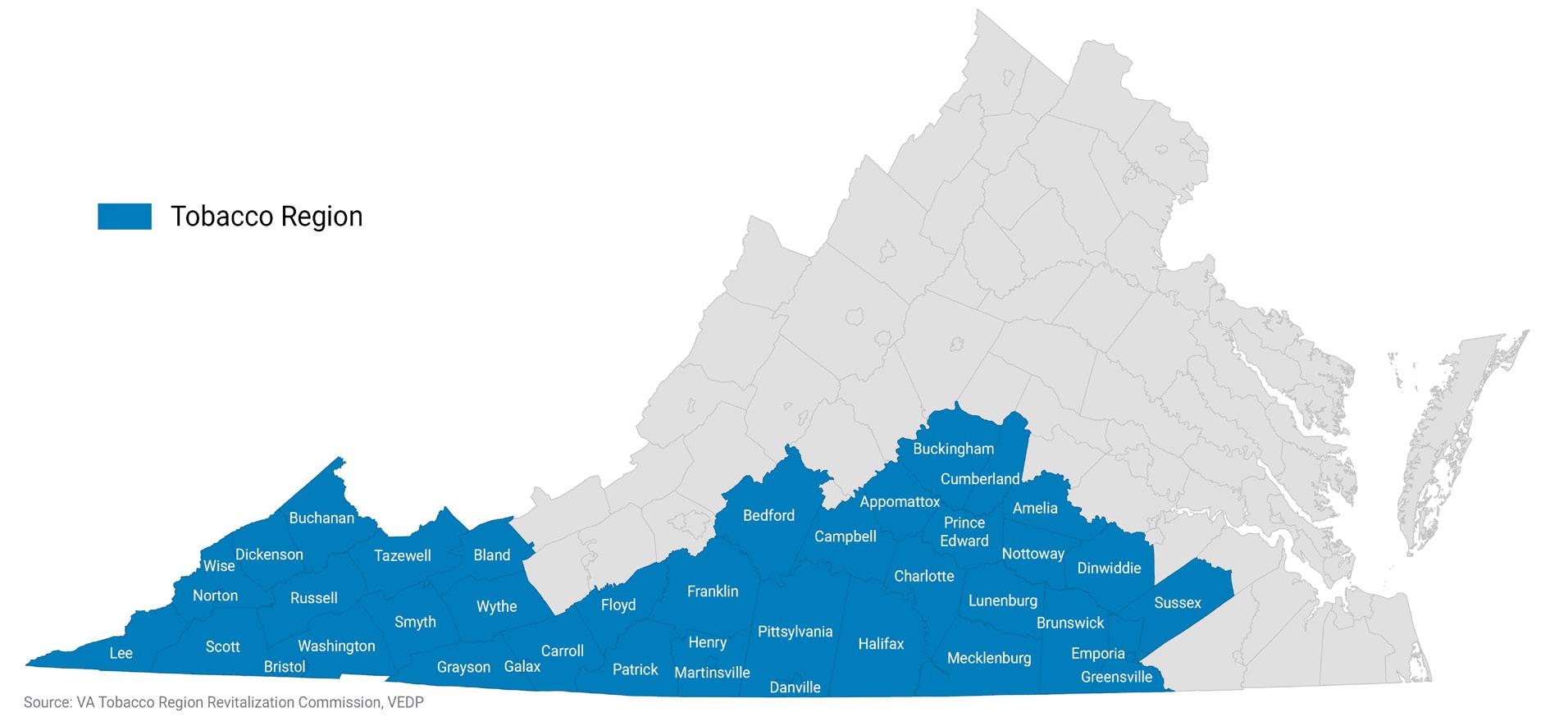The Tobacco Region Opportunity Fund (TROF), administered by the Virginia Tobacco Region Revitalization Commission, provides performance-based monetary grants and loans to localities in Virginia’s tobacco-producing regions (34 counties and six cities in southern and southwestern Virginia). These grants and loans assist in the creation of new jobs and investments, whether through new business attraction or existing business expansion and are awarded at the Commission’s discretion.