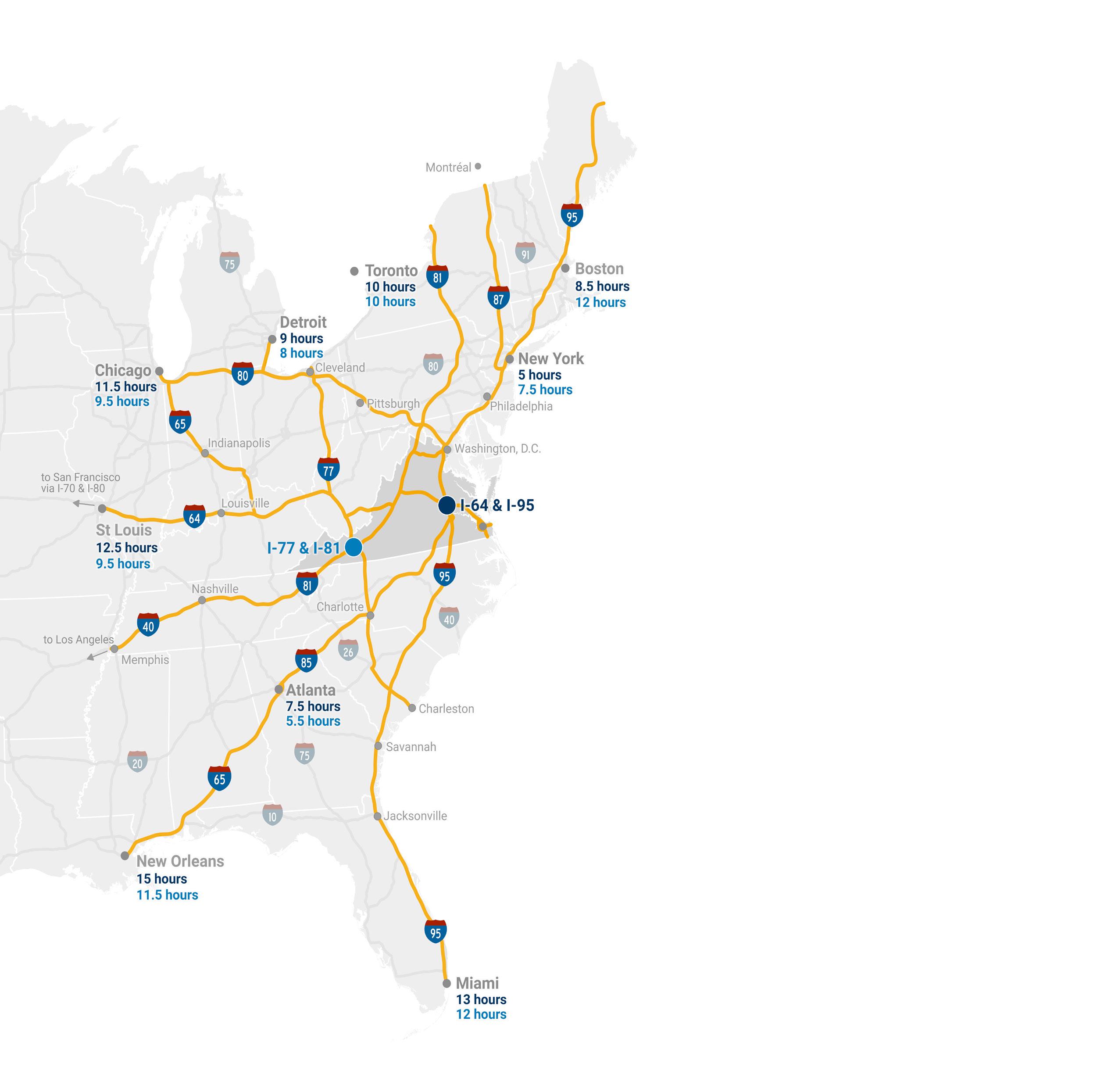 6 major interstates, including major North-South and East-West trucking routes