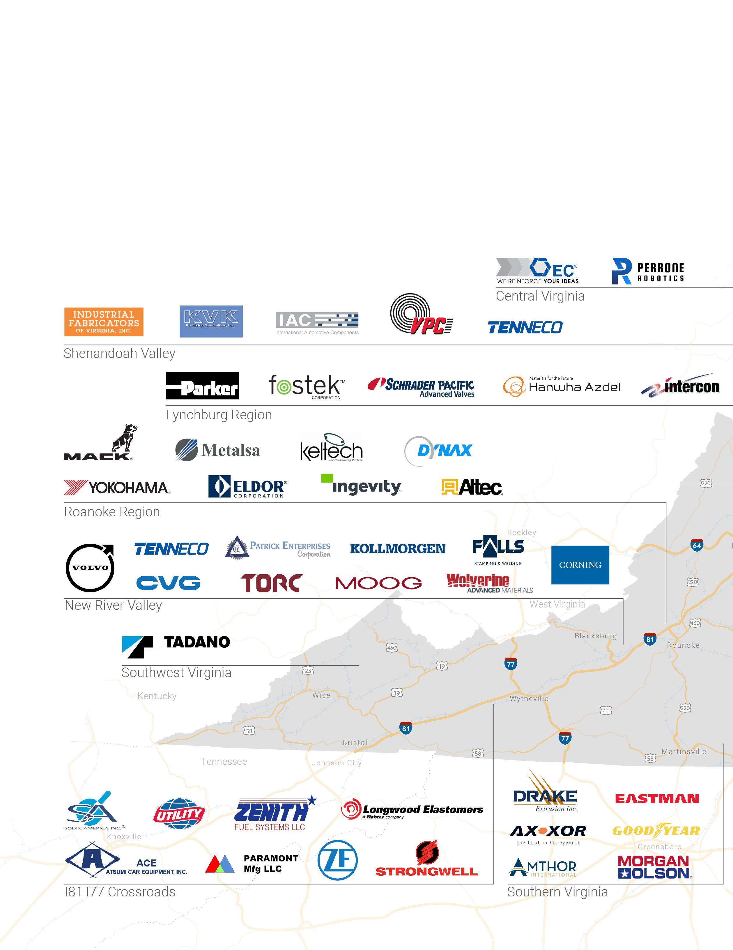 A diverse, steadily growing ecosystem of automotive manufacturers, innovators, and customers already thrives in Virginia, with ready access to specialized supply chains and a strong manufacturing base. The Commonwealth’s automotive companies span the entire value chain and all major industry sub-sectors, including manufacturers of auto parts and tires, vehicle assembly operations, and suppliers of parts, materials, and subcomponents, among others. Industry leaders in Virginia include Volvo Trucks, Volkswagen, Micron, Eldor Corporation, Perrone Robotics, Tenneco, Mack Trucks, Yokohama, Goodyear, and Toray.