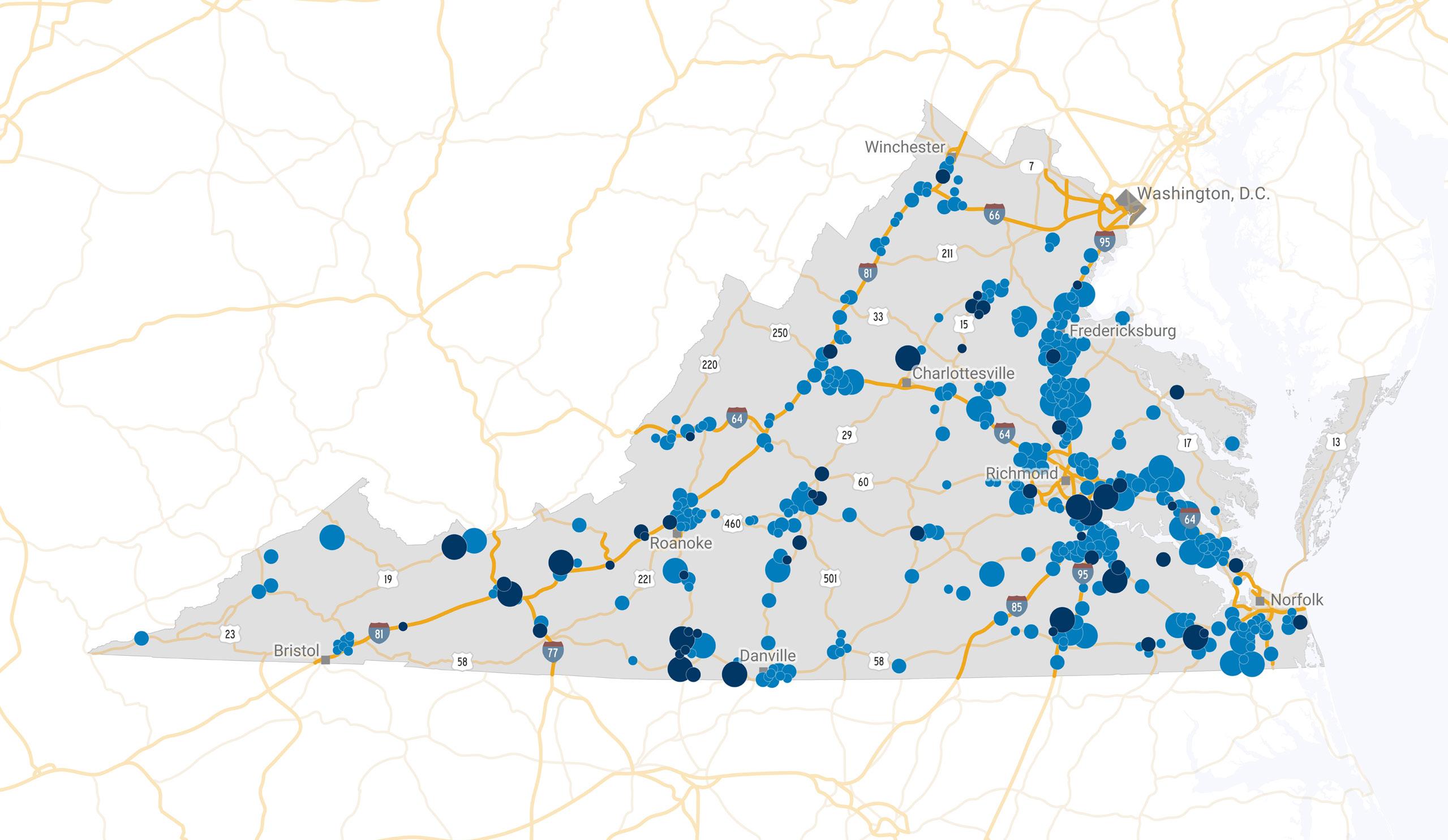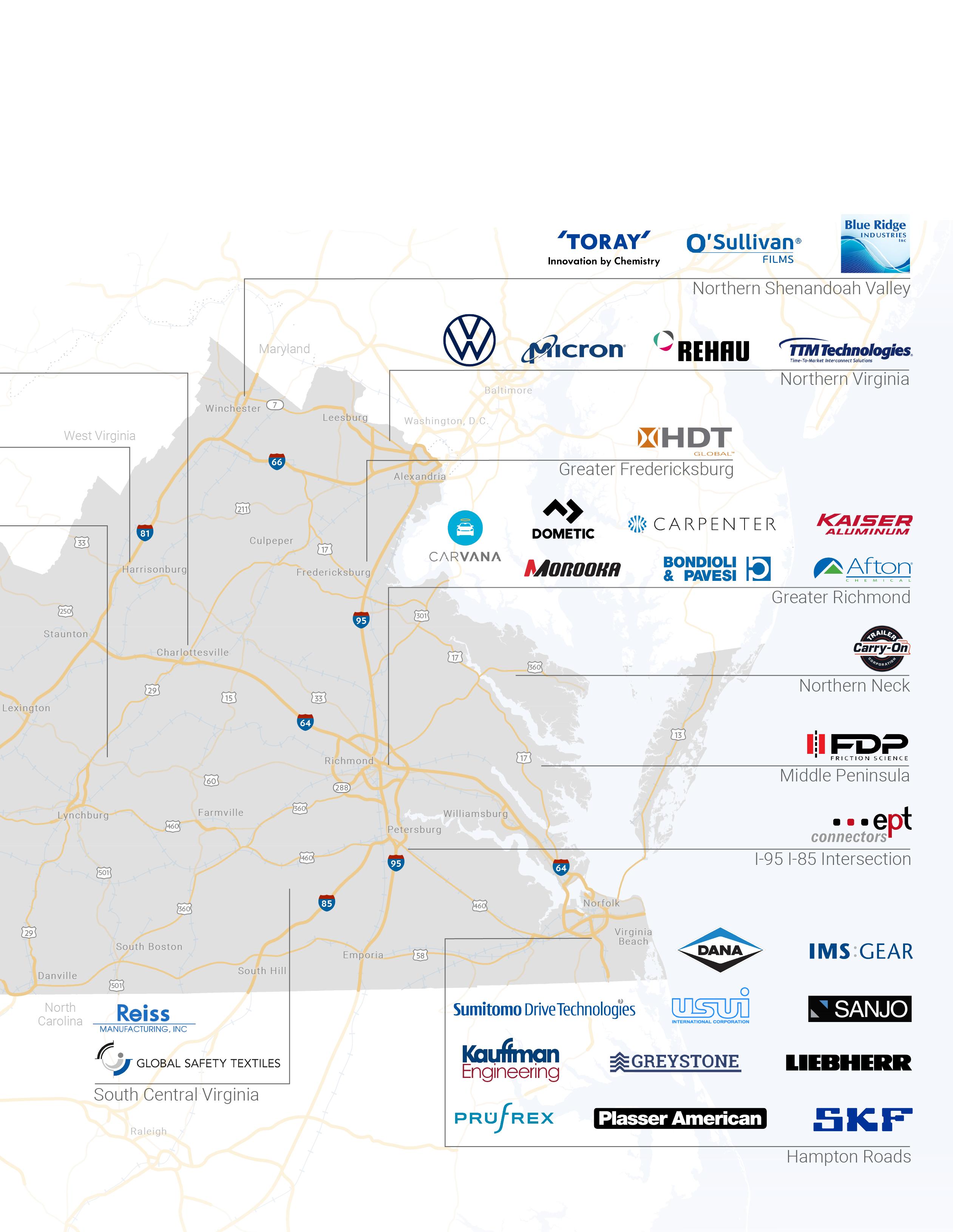 28 8 1 3 1 7 3 6 0 5 8 5 8 2 9 3 3 ¡ 2 3 1 9 30 1 25 0 2 1 1 50 1 22 0 22 1 1 5 6 0 7 7 7 5 2 6 8 5 9 5 6 4 7 7 9 5 7 1 7 0 6 8 7 9 6 4 4 0 4 0 4 0 6 6 6 4 8 1 8 1 95 85 95 6 4 2 9 77 77 TENNESSE E KE N TUCK Y OHI O WES T VIRGIN I A NO R TH CAROLI N A M A R Y L AN D DE L A W AR E NEW JERSEY BWI CHO DCA GSO IAD LWB LYH ORF PHF RDU RIC ROA SHD TRI TYS SBY Bristol Charlottesville Nor folk Richmond Roanoke Danville Winchester Kn oxvill e Charles to n Baltimo re G reensbo ro Raleig h Washington, D.C Commercial Airpor t The Por t of Virginia 6 4 Interstate 5 8 U.S. Highway 288 State Route Railroad