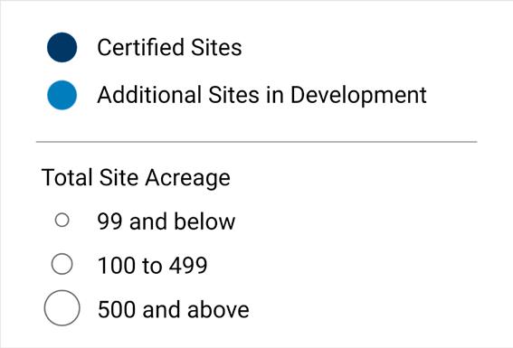 Size and certification status of sites across Virginia
