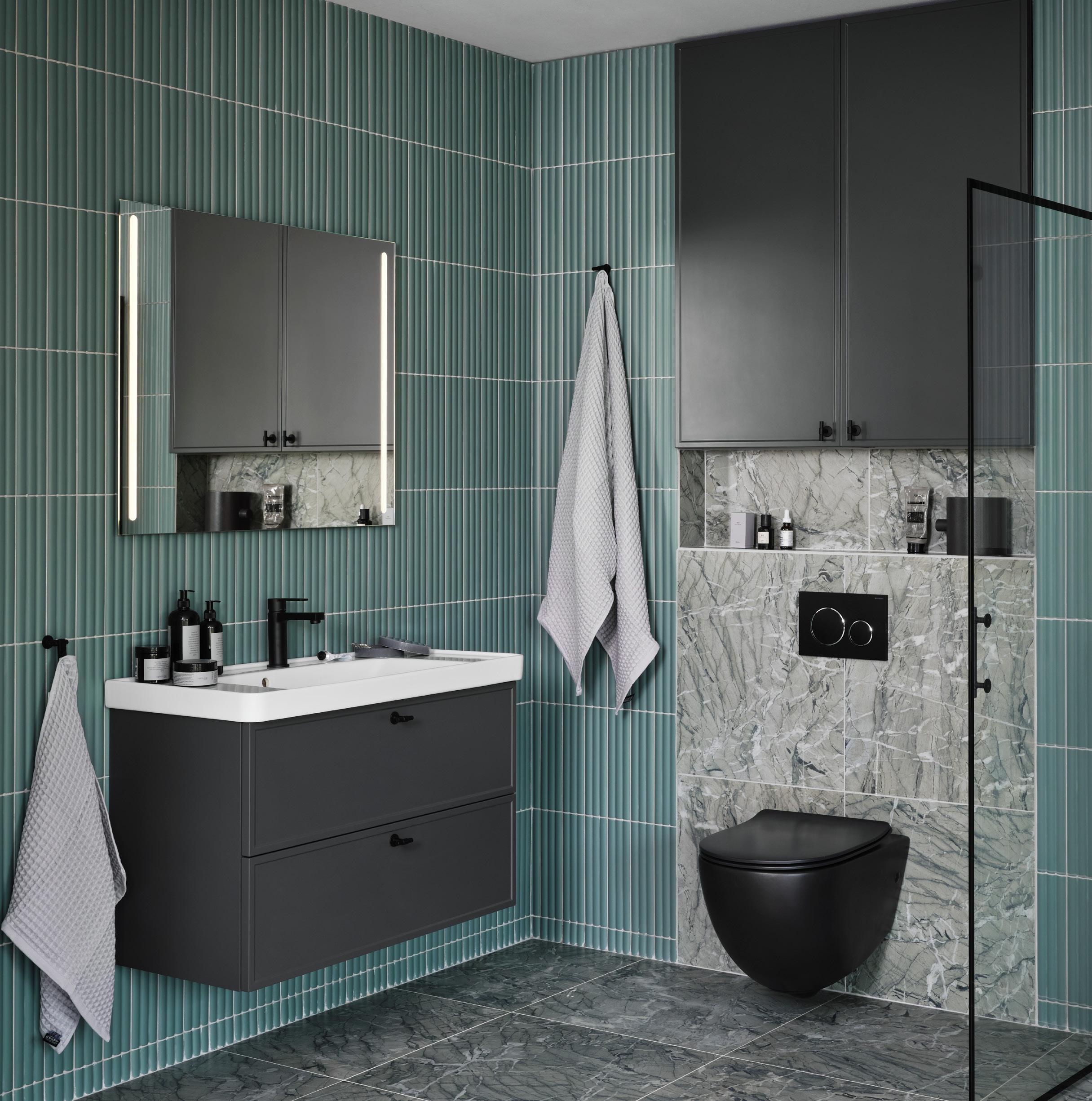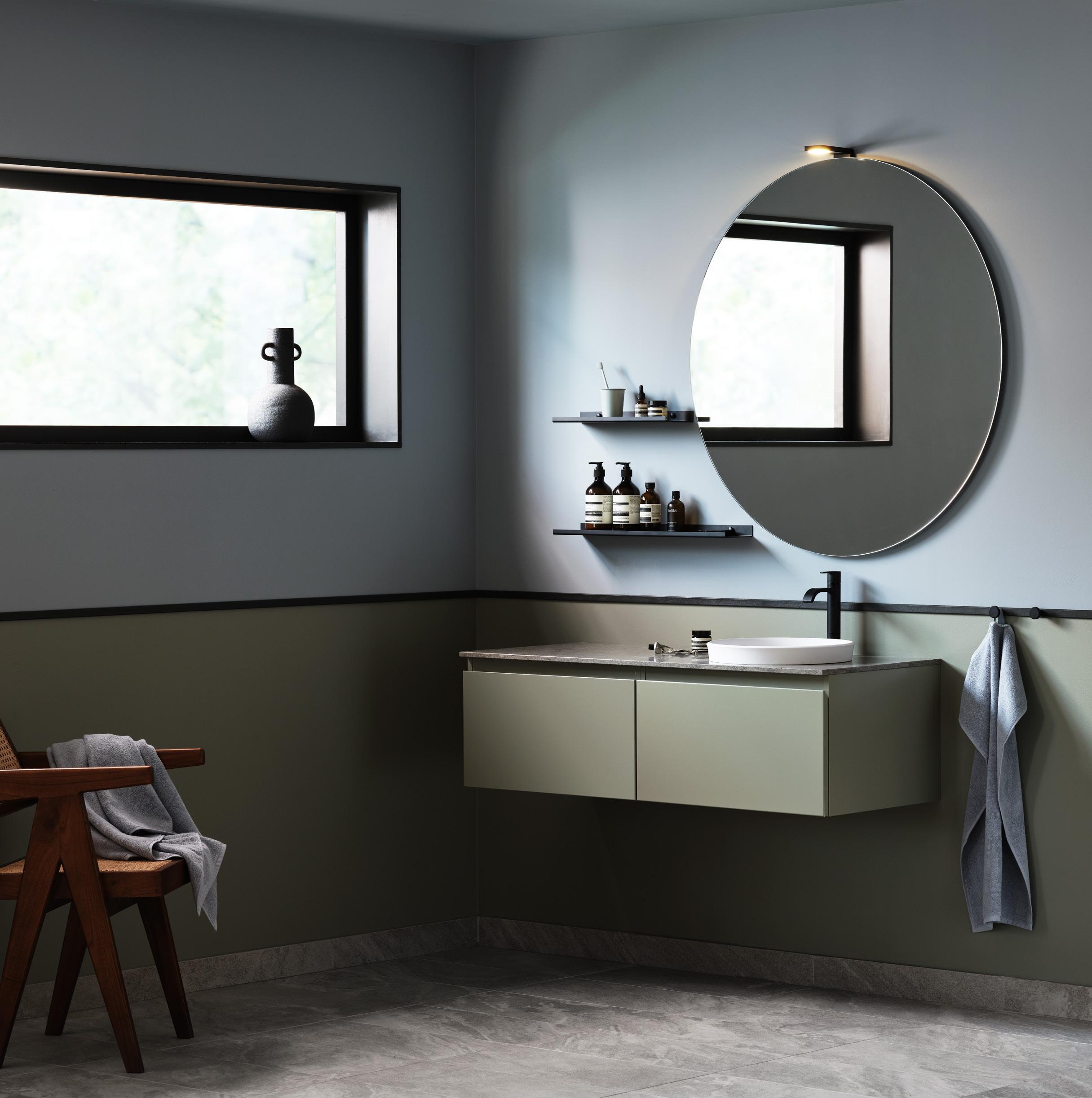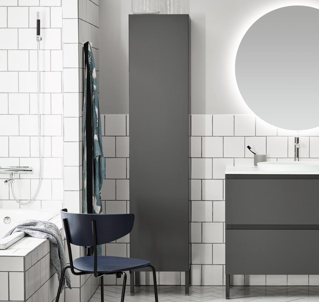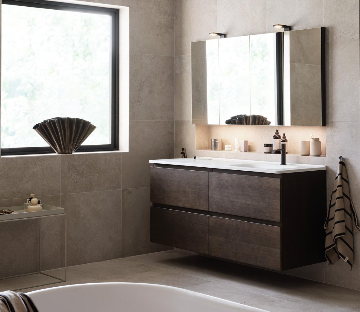 Skapa ditt personliga badrum. Välj allt från kulör och luckor till blandare, handtag, belysning och speglar. Se mer på s. 108–119.