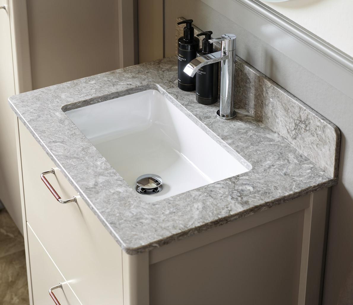 Som tillval finns en stänkpanel i samma utförande och bredd som topplattan.
