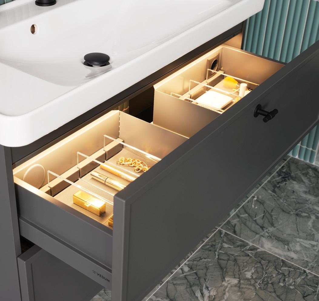 Som alltid fortsätter vi att utveckla och uppdatera vårt befintliga sortiment, i linje med vår filosofi om att skapa långsiktigt hållbara lösningar. Allt för att du ska kunna skapa ett badrum som tilltalar dig och alla dina sinnen. Se mer av våra nyheter på vår hemsida, vedum.se.