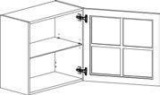 Målad lucka av 19 mm MDF-board med ram och allmoge spegel, fasad kant, fas 2,5 mm, rambredd 80 mm. Vitrinlucka med spröjs och klarglas. Vitrinlucka till skåp i höjd 988 mm och i höjd 1138 mm finns både med hel vitrin och toppvitrin. Toppvitrin finns endast i bredd 396 mm. Luckor i bredder upp till och med 196 mm, luckor i höjder upp till och med 220 mm och fronter i höjder upp till och med 230 mm levereras släta. Levereras i alla kulörer mot kulörtillägg.
