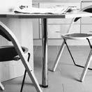 Vit 16 mm spånskiva med 80 g/m² melaminbeläggning, rygg av 3 mm HDF-board.