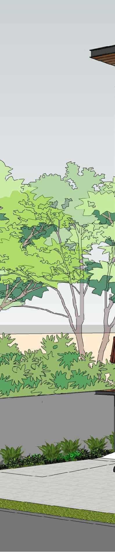 Thehouseisdesignedwithbrick,concrete,mildsteel,glassand wood.Thewoodextendsuninterruptedthroughouttheexterior canopy.