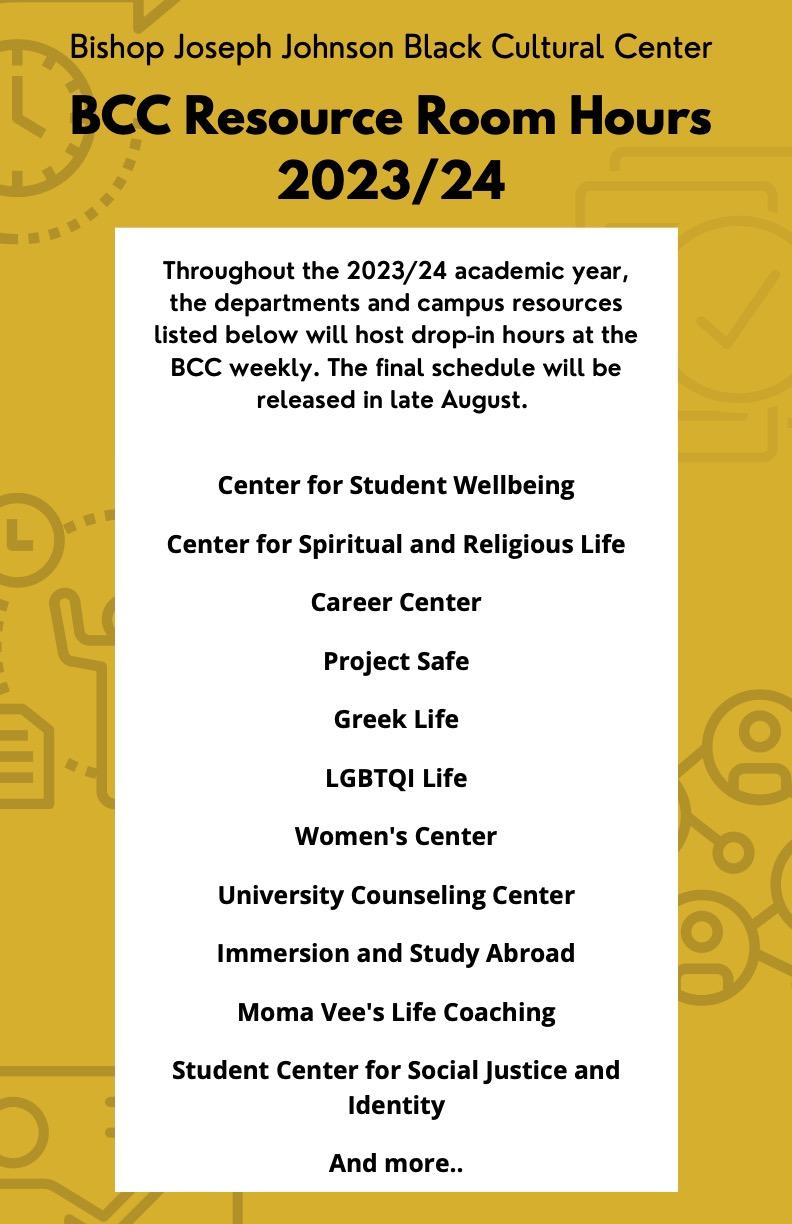 BCC Resource Room Drop-in Hours and other opportunities to connect with campus resources.