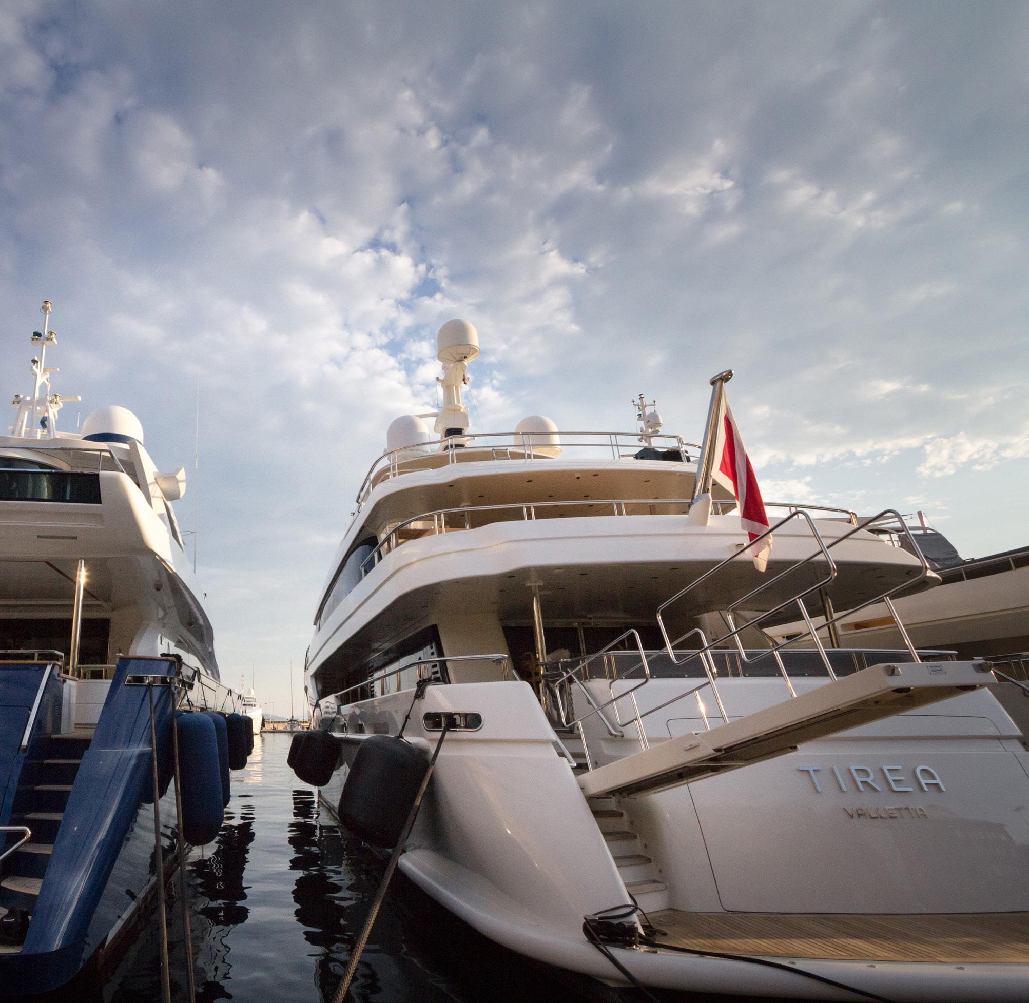 Picture of a yacht bearing the flag of Malta islands on the port of Rijeka, Croatia, on the waterfront.