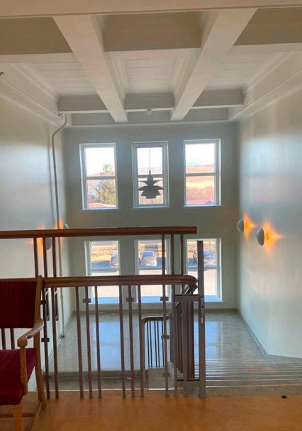 Það er ótrúlega skemmtilegt og mér finnst ég heppin að fá að starfa hér. Það hefur alls konar starfsemi verið í húsinu í gegnum tíðina og hér er mjög góður andi, starfsfólk, skjólstæðingar og aðstandendur eru sammála um það. Það er samt einn rauður stóll staðsettur úti á miðju gólfi uppi á háalofti sem er „bannað“ að færa. Ég hef ekki storkað örlögunum með því að reyna að færa hann og ekki orðið vör við neinn draugagang enn þá.