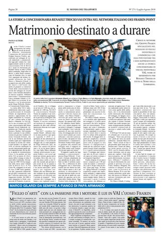 cia di Sondrio, che si sviluppa su un’area di 3.850 mq con capannone di 1.200 mq. Nel 2013 la concessionaria Renault Trucks ha ampliato il suo territorio di competenza aggiungendo la provincia di Bergamo alle preesistenti Como, Lecco e Sondrio. Il servizio assistenza sul territorio di competenza è garantito da altre sette officine autorizzate dislocate tra le quattro province. “Nel 2017 - esordisce Armando Gilardi - abbiamo chiuso un anno positivo e per quanto riguarda il 2018 ci a spettiamo di fare altrettanto bene. Quest’anno c’è la novità del noleggio che ci è stato proposto da Diego (Pellicioli, ndr), un amico che conosco da diversi anni e di cui ho piena fiducia. Io e mio figlio Marco abbiamo valutato positivamente la proposta Fraikin e così eccoci qui pronti per iniziare questa nuova avventura. Devo dire che è novità che piace molto a mio figlio che essendo più giovane è più avanti di me in quanto a nuove idee. Il noleggio in Italia è sta ancora muovendo i primi passi e noi vogliamo con tribuire alla sua diffusone perché crediamo sia una soluzione competitiva ed efficiente per l’azienda di trasporti”. “Sono convinto che il noleggio sia il futuro e noi vogliamo essere i