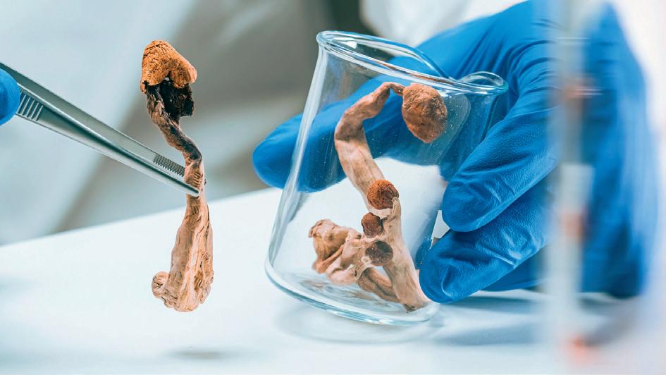• As the tempered chocolate cools slightly, grind your magic mushrooms in a coffee grinder until they're super fine.