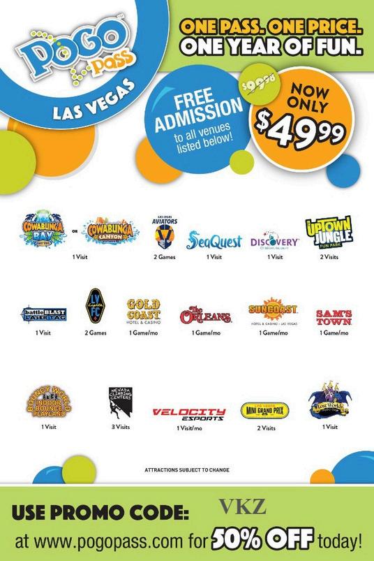 Vegas mom tip - Pogo Pass is a total game-changer! Instead of paying full price at each spot (hello, sticker shock!), one pass gets you into a bunch of awesome attractions around town. It pays for itself after just one visit to Cowabunga Bay or a few trips to our favorites, Battle Blast Laser Tag, Ninja Lair and Las Vegas Mini Grand Prix, and free bowling every month! It’s perfect for keeping the kids busy all year long without blowing the budget! .It’s 50% off with code VKZ so $50 gets you more than $800 in savings !