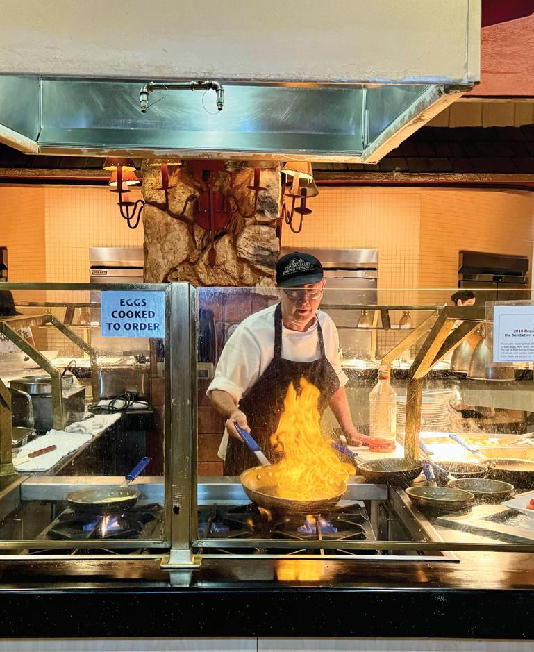 There’s more: A made-to-order omelet station, other classic brunch buffet items and a vast selection of desserts. A highlight: Seasoned and sautéed crab legs flavored with a garlic and herb blend. Is this a Wynn, Bellagio or Caesars Palace buffet? No. Does it need to be? No. There’s room for everyone at the table.