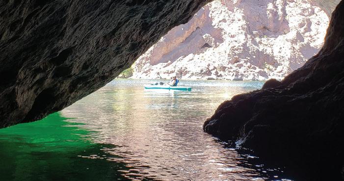 The Black Canyon Water Trail was established in 2014 and is nearly 30 miles long going from just down river from Hoover Dam at river mile marker 64 to Eldorado Canyon at river mile marker 39. Along this water trail can be found caves, hot springs, slot canyons and wildlife, including bighorn sheep, bald eagles, turtles and more. Almost every side canyon between the dam and the Arizona Hot Springs has hot water running down it.