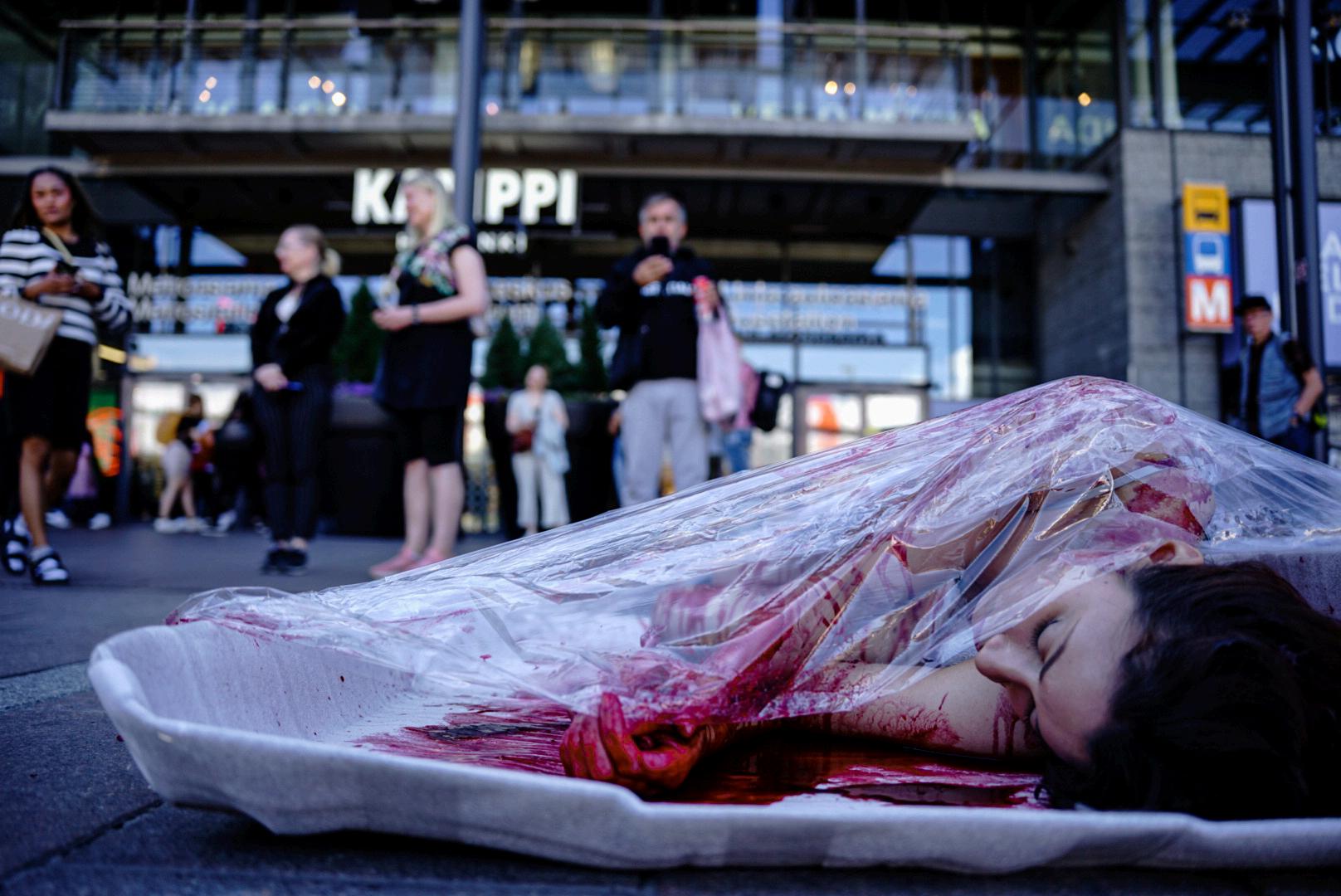 SARIKIVIJÄRVI onVegenpäätoimittaja.Kuvaonvuodelta2022,kunhänolimuidenOikeutta eläimille-vapaaehtoistenkanssarinnakkainlihapaketteinaHelsinginKampinNarinkkatorilla.