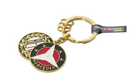Selles kullatud messingist Sindelfingeni võtmehoidjas on suurepäraselt ühendatud atraktiivne välimus ja funktsionaalne disain. Võtmehoidja rõngale on lasergraveeritud kiri „Mercedes-Benz“, samas rõhutavad selle kütkestavat välimust 1909. aasta Benzi logo ja 1916. aasta Mercedese logo. Üksikute võtmete kiireks eemaldamiseks või asendamiseks on kolm väikest lisarõngast. Värvus: kuldne, materjal: messing, pikkus: umbes 9 cm, kolm väikest lisarõngast, valmistatud Saksamaal.