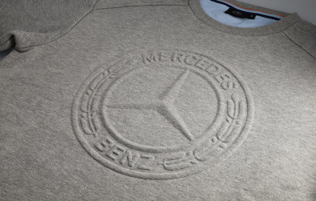 95% puuvill/5% polüester. Ajalooline Mercedese täht, eest viimistletud Swarovski® kristallidega. Kuldse kirjaga Mercedes paremal varrukal. Suurustele XS–XL.