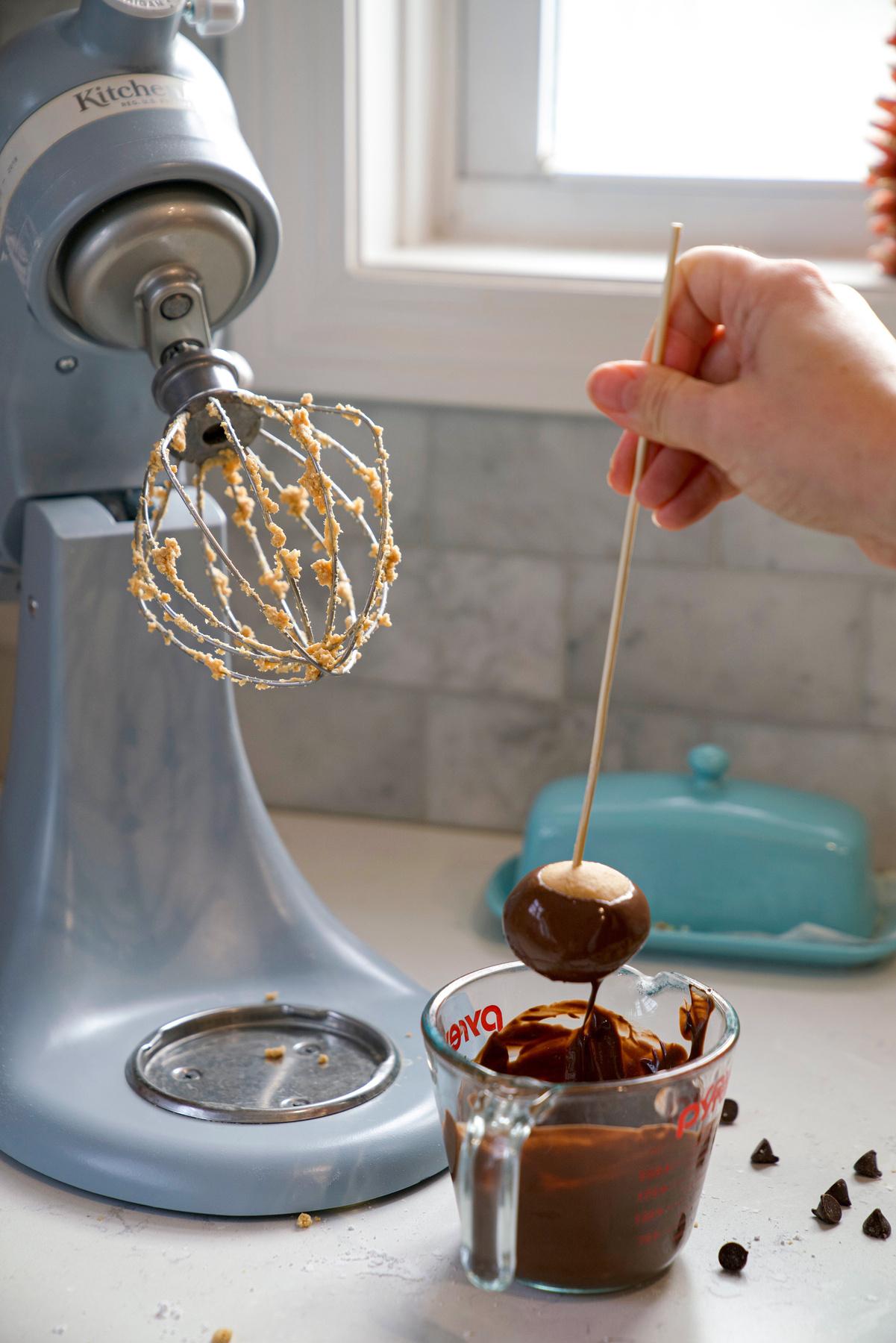 Shapedoughintoballsandplaceona cookiesheetcoveredinwaxedpaper Insert atoothpickintoeachbeforeplacingin freezerforabout30minutes