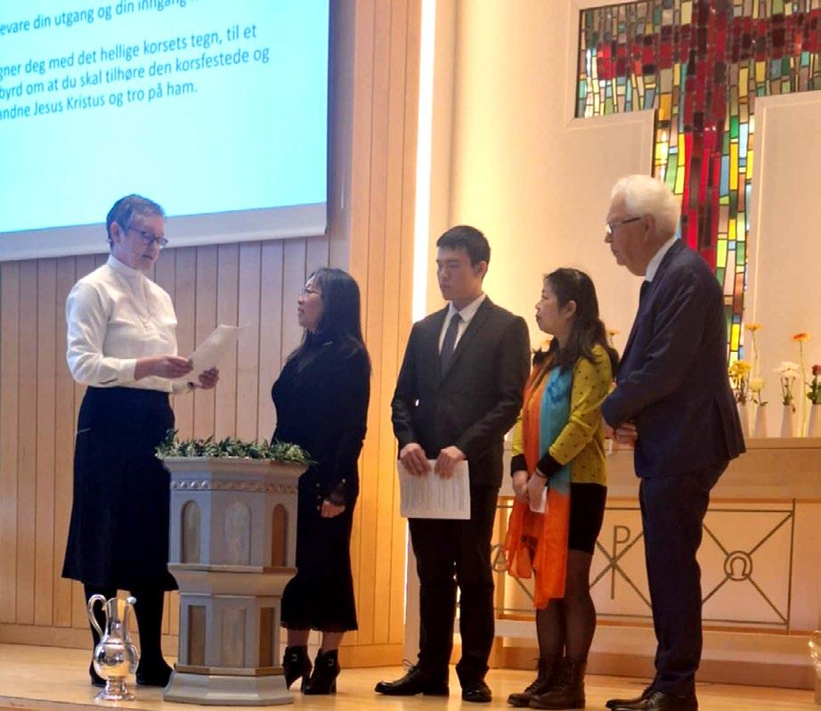 I Porsgrunn Frikirke var det også dåp 1. Påskedag, på kinesisk! Wu Yan Ping, som har vært med i den kinesiske bibelgruppen som møtes på Teams hver søndag, har blitt så berørt av bibelstudiet. Jesu kjærlighet har ledet henne fram til døpefonten, og hun fryder seg over å være en del av Guds store familie! Også venner i Kina fulgte med under dåpen! Det var nesten så vi opplevde påske og pinse på samme tid da vi på to språk samtidig ba Fader Vår, leste Trosbekjennelsen og sang «Å nåde stor»!