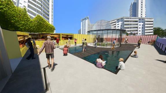 The proposed solution for this crisis was to reuse the current abandoned pool that is shared with three condos and transforming it into an aquaponics center that is surrounded by food venders which will use the food that is grown from it.