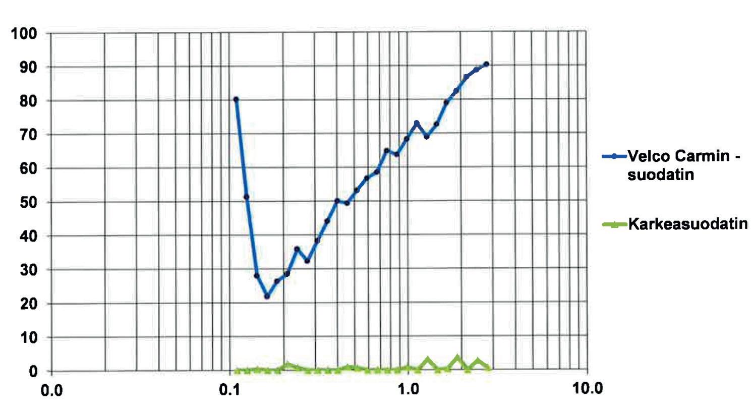 Velco Carmin karmiventtiilisuodattimen erotusaste