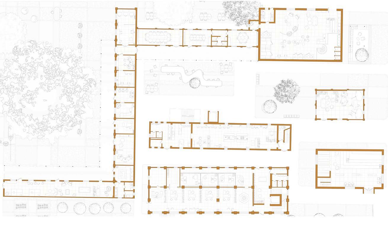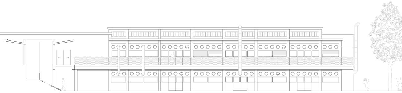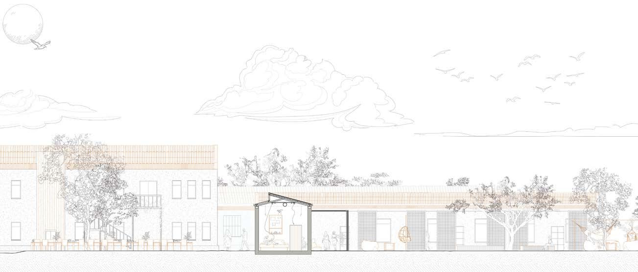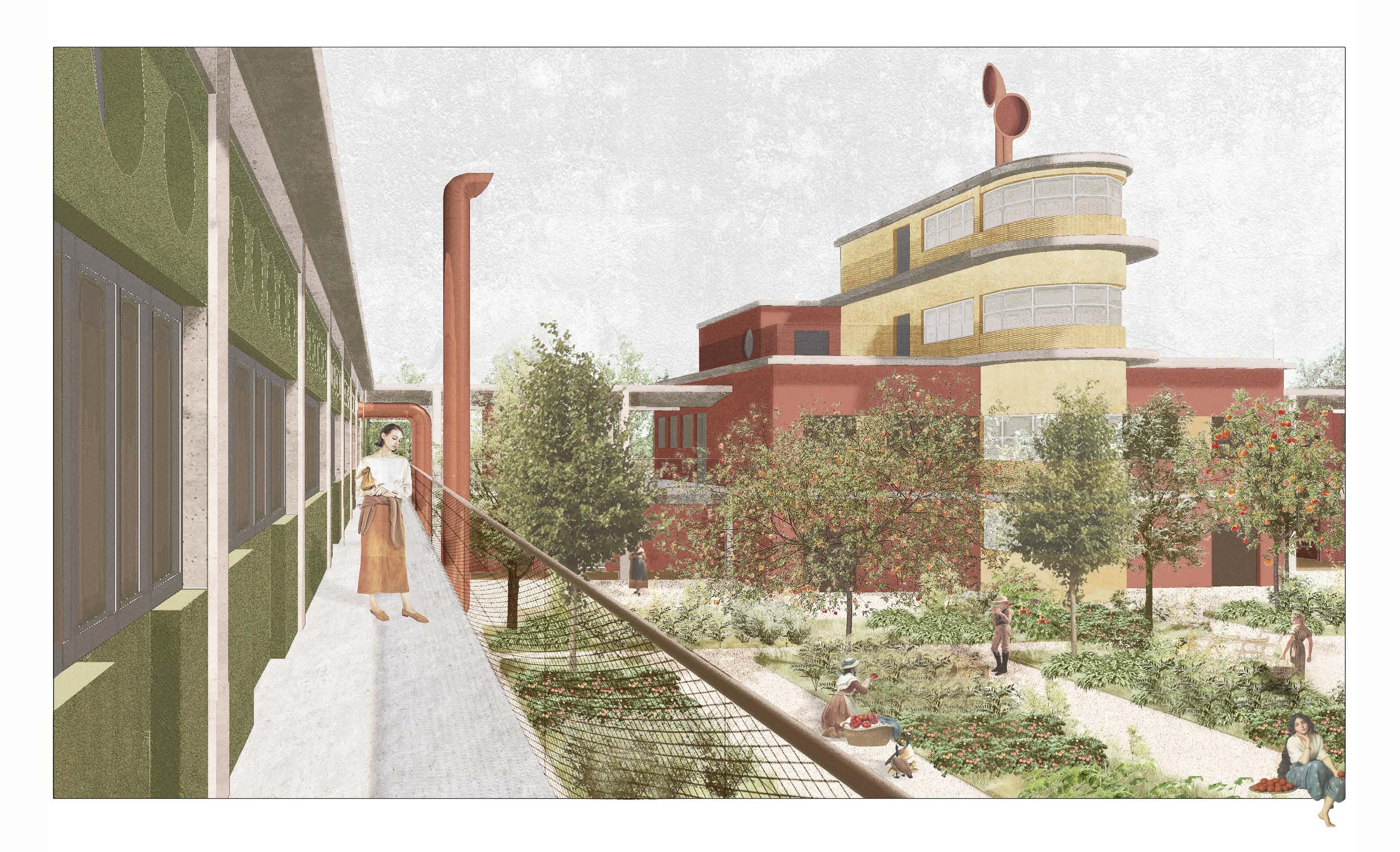 This project has been developed as part of an Architecture of Interiors Design Studio under the supervision of prof. Lorenzo Bini and prof. Francesca Albani. The design breathes new life into a former heliotherapy colony, repurposing it as a vibrant culinary school. The main objective was to restore the original facade by removing outdated electrical systems, HVAC, and pipes, replacing them with specially designed flexible systems that traverse the structure. Inside, the layout boasts a flexible and non-invasive design, carefully preserving as much of the building’s original charm as possible. The culinary school offers a dynamic learning environment, featuring both practical and theoretical classes. In addition to the educational spaces, the culinary school also houses a commercial restaurant where students can showcase their culinary creations to the public. An on-site garden provides fresh ingredients, further emphasizing the school’s commitment to sustainable practices and farm-to-table concepts.