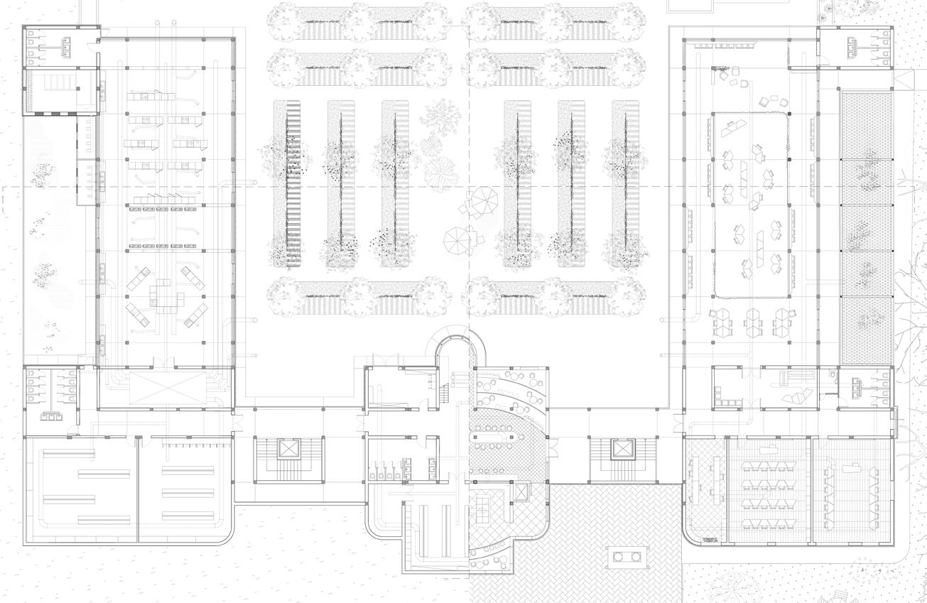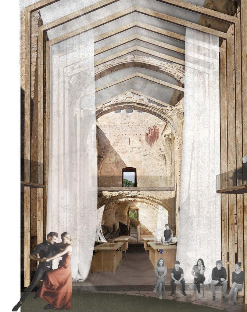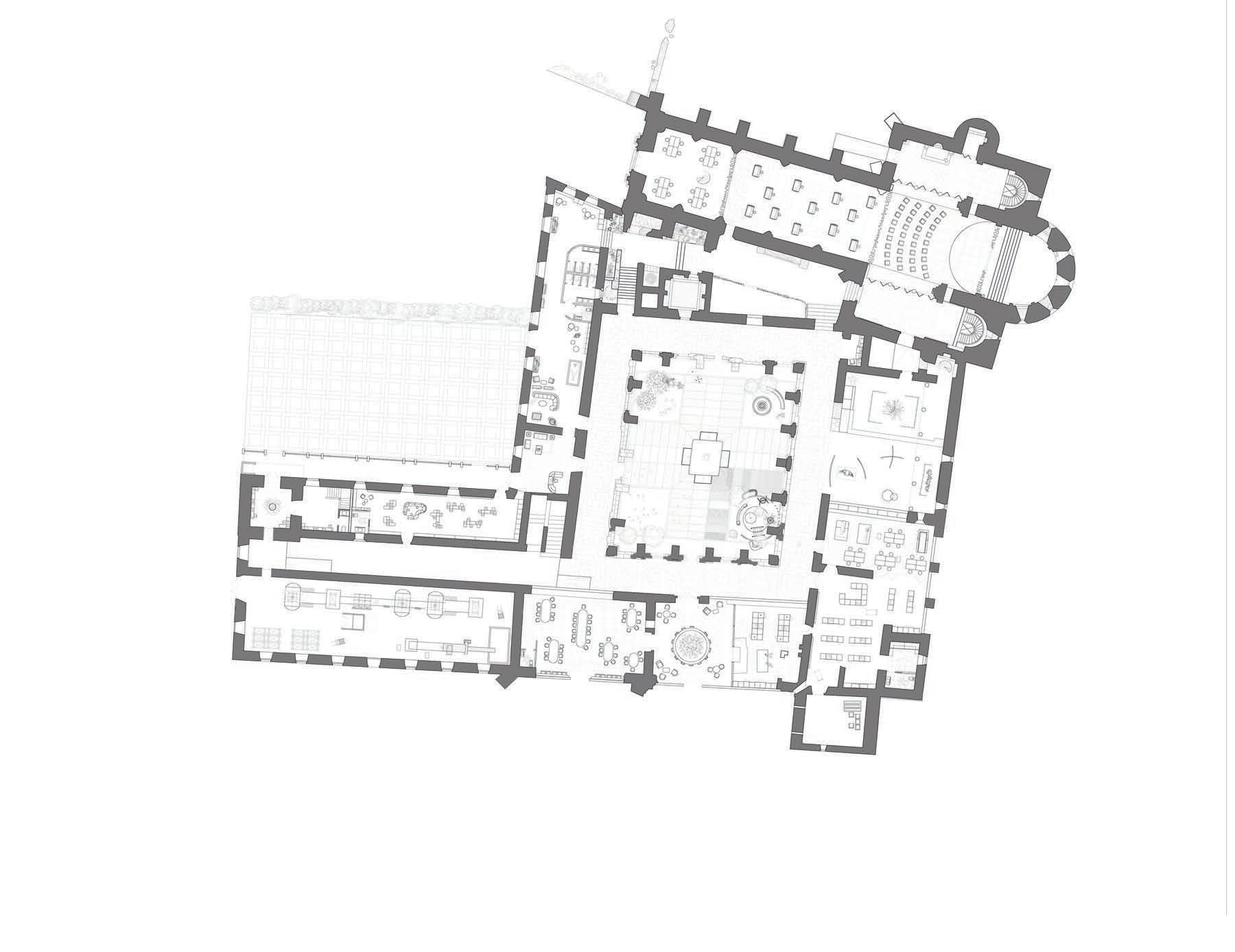 This project has been developed as part of the course and competition “Adaptive reuse X Placemaking” by Never Enough Architecture. The Monastery of Pelayos in Madrid has undergone a transformative journey, blending tradition and innovation. The church, repurposed as a performance hall, is at the center of the project, which also features a courtyard inspired by the Madrid game of Parchis. The monastery’s interior houses olive mills, an organic cafe, and workshops that produce olive-inspired products. The project also includes creative art workshops and an outdoor market. The architecture balances preservation and innovation, with metaphorical roofs symbolizing olive trees. The project is a testament to thoughtful design, preserving the past while introducing contemporary functions, creating a harmonious oasis where the past and present coexist. The project is a testament to the importance of placemaking and adaptive reuse in preserving the past.