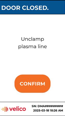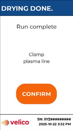 • At the end of the drying operation, re-clamp the PDC plasma tubing clamp to prevent residual liquid plasma from entering the drying chamber.