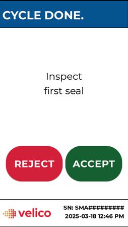 Note: When a seal is rejected, there could be a leak in the Plasma Drying Chamber. The Plasma Drying Chamber should be removed and discarded as if there is a breach.