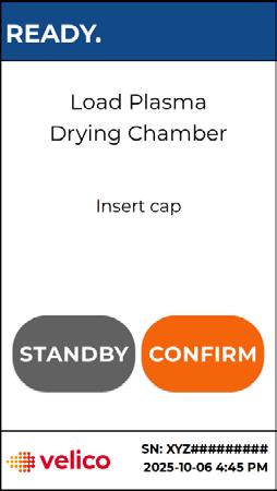 • Only use Plasma Pretreatment Containers (PPC), Plasma Drying Chambers (PDC), Frontline storage pouches, and desiccant supplied or approved by Velico Medical.
