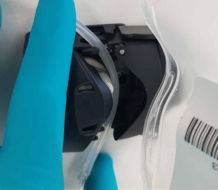 • Do not release the PDC manual clamp or hemostat until the PDC is fully loaded into the Dryer. The Dryer UI will prompt the operator to release the clamp. This mitigates the risk of liquid plasma being introduced into the drying chamber prior to the drying process.