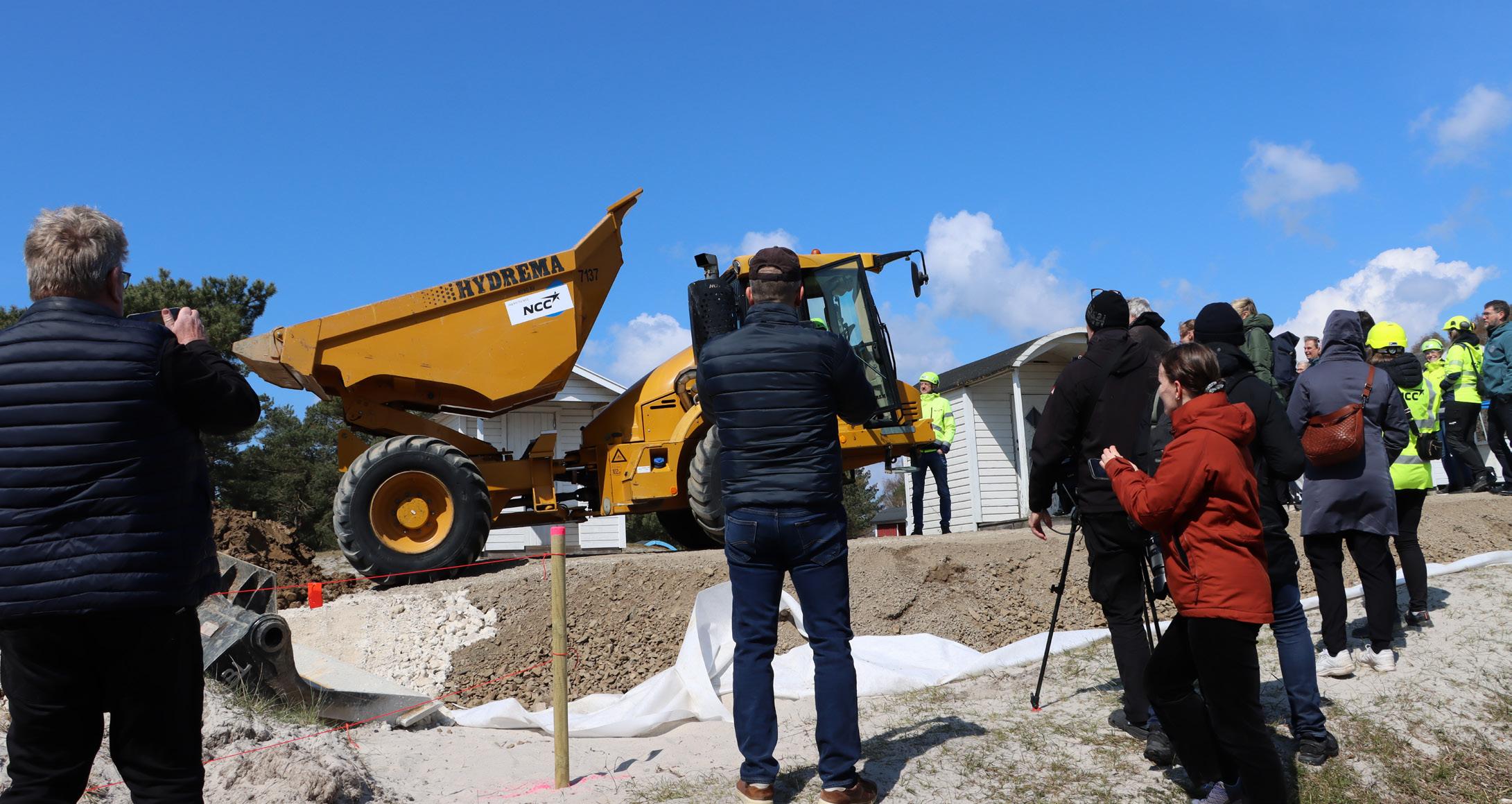 Den 24 april var det historisk byggstart av skyddsvallen som anläggs för att skydda näset mot tillfälliga havsnivåhöjningar. Första sträckan är södra Ljunghusen och det känns stort att få sätta skopan i marken efter 10 år med utredningar, framtagande av ansökningshandlingar och rättslig process. Ni kan läsa mer om vallarna och planeringen av dessa i detta nummer av kommunikén.