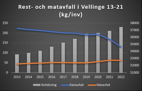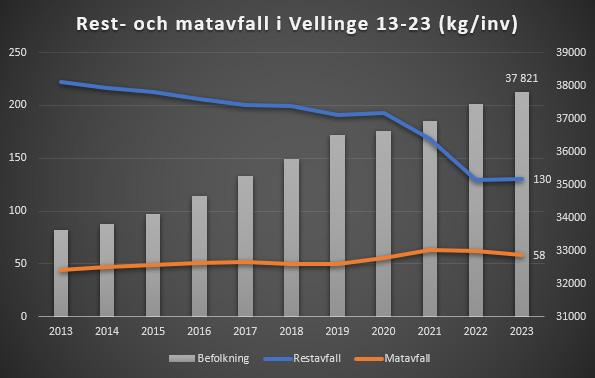 Rest- och matavfall i Vellinge kommun mellan 2013 - 2023
