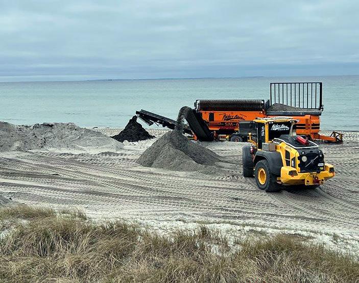 här långa ytorna sväljer enormt mycket massor. Men vi tar vara på vår sand väl och planerar så att vi inte lägger för mycket på något ställe. Det handlar om att använda resurserna på bästa sätt, säger Daniel Söderlindh.
