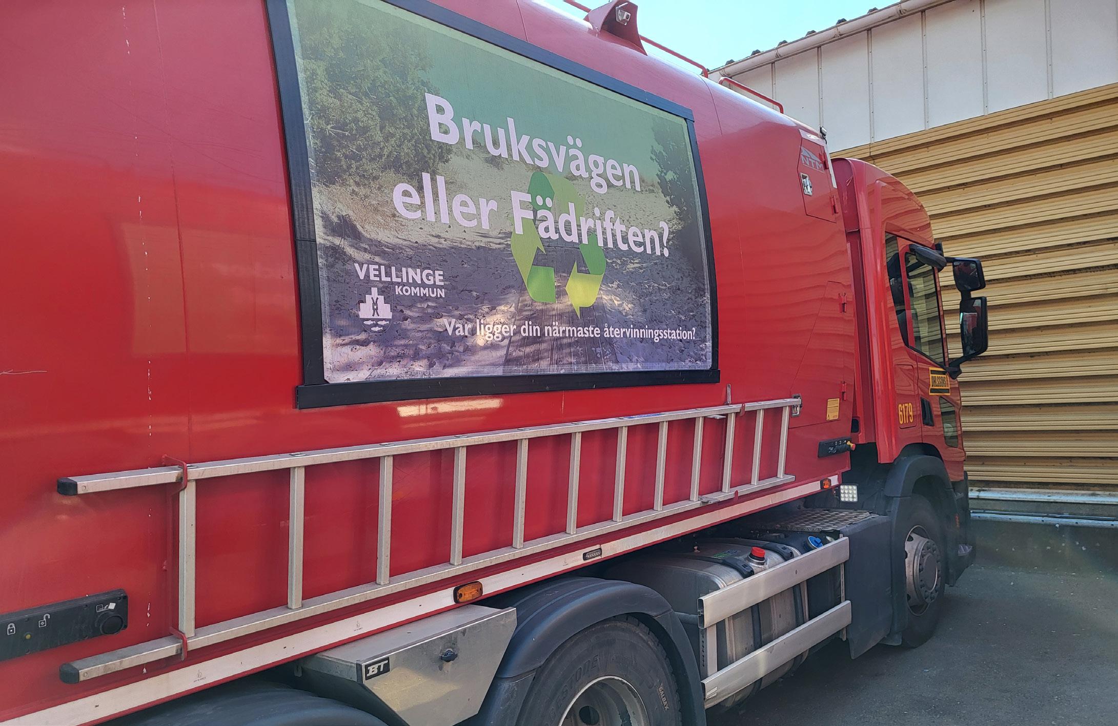 Har du sett att avfallsbilarna har fått nya dekaler? Med olika budskap om värden i vår kommun uppmanar vi invånarna att källsortera.
