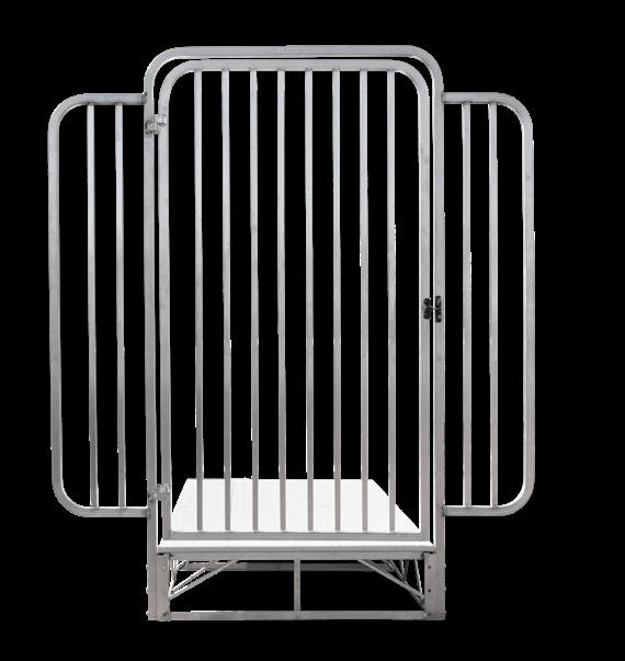 Gangways feature heavy-duty 2”x5” aluminum rectangle tube style and are available in lengths up to 48’. Welded construction forms a solid one-piece design. Gangways are standard with Truss railing, kickrail, midrail, pair of rollers, and heavy-duty transition plate with replaceable wear guard.