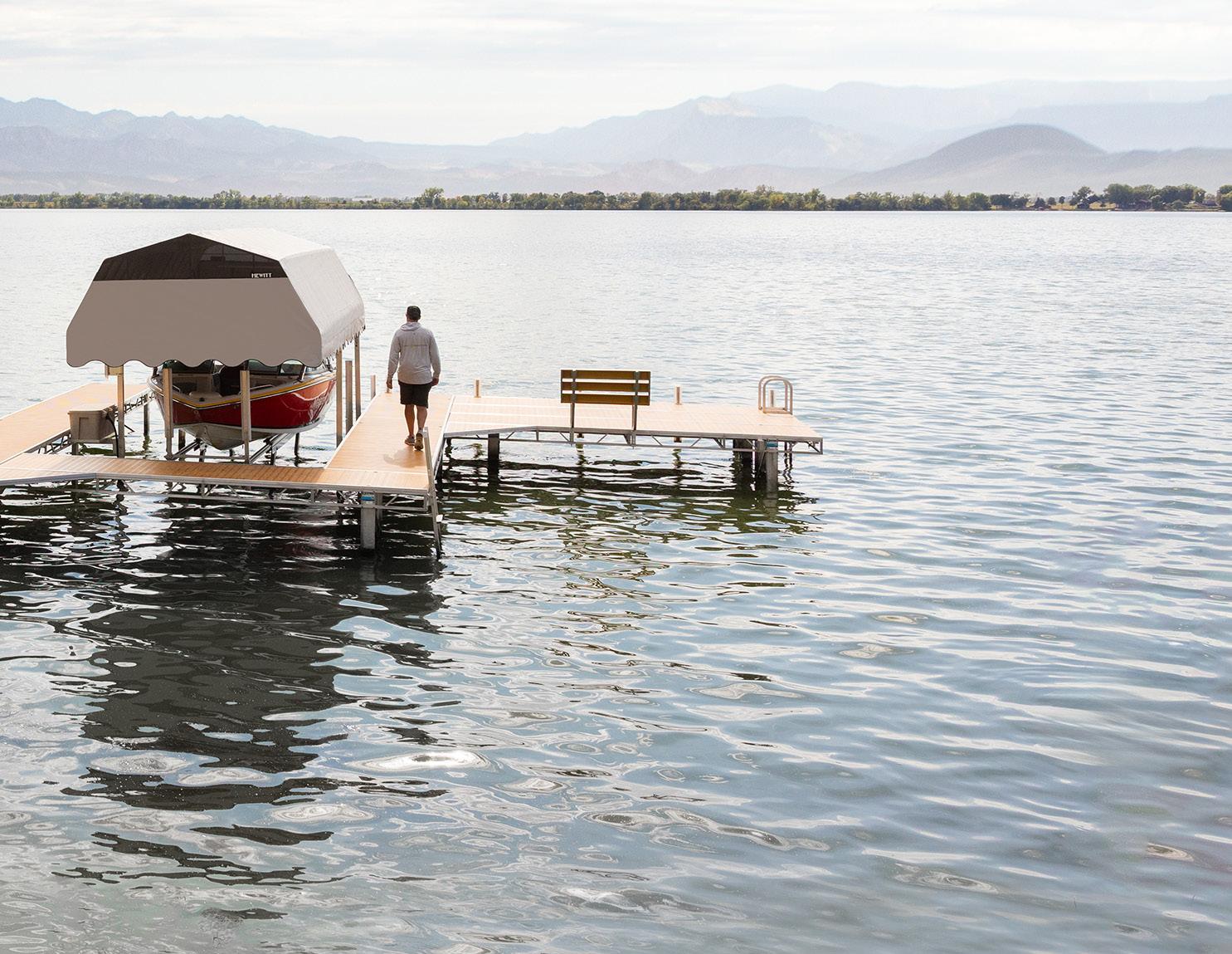 At Hewitt, we strive to be the leader in high-quality waterfront solutions. We manufacture industry-leading docks, lifts, and related marine products designed for durability, innovation, and ease of use. With over 50 years of experience, we take pride in crafting products that withstand the elements while enhancing your waterfront experience. Our commitment to superior engineering, customer satisfaction, and expert craftsmanship ensures that every Hewitt product is built to perform—season after season. Our American Made products are manufactured in Nicollet, MN and we proudly serve the United States and Canadian markets. Whether for residential, commercial, or recreational use, Hewitt provides the strength, reliability, and ingenuity that customers trust.