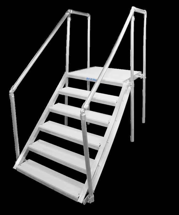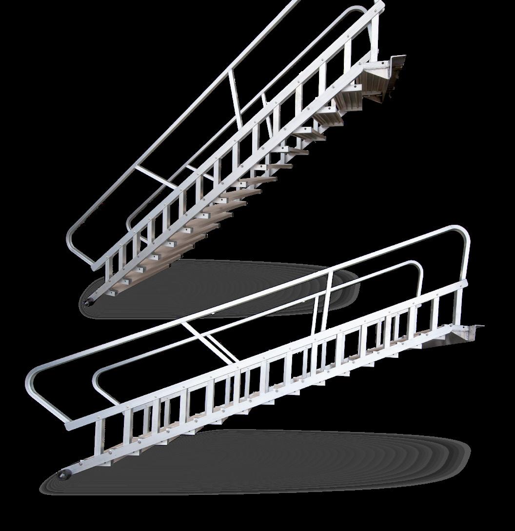 The Dura Stairs are custom-built aluminum stairs designed to fit your specific location, providing a durable, lightweight, and corrosionresistant solution. Engineered for strength and longevity, they can be customized to meet ADA requirements, ensuring accessibility for all users. Suitable for both indoor and outdoor use, these stairs are available in widths ranging from 2’ to 12’, offering flexibility for various applications.