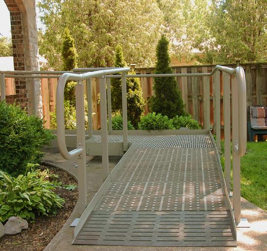 Constructed of powder coated aluminum our wheelchair ramp construction is complimented with patented ThruFlow™ decking panels for the running surface which makes QRamp the best quality, most attractive, safest modular ramp available on the market today. The durable, non-slip ThruFlow panels enable rain, snow and debris to pass through the surface, making it virtually maintenance free.