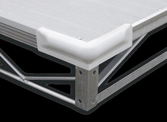 Extruded aluminum decking offers superior strength, lightweight design, and corrosion resistance. It includes sound-deadening material and a baked-on white or beige finish for a durable, non-skid surface. A wood grain powder-coated option is available for select products like the Residential Gangway, Ultra Dock™, and Ultra Bench™—providing the look of wood without the upkeep, warping, or splinters.