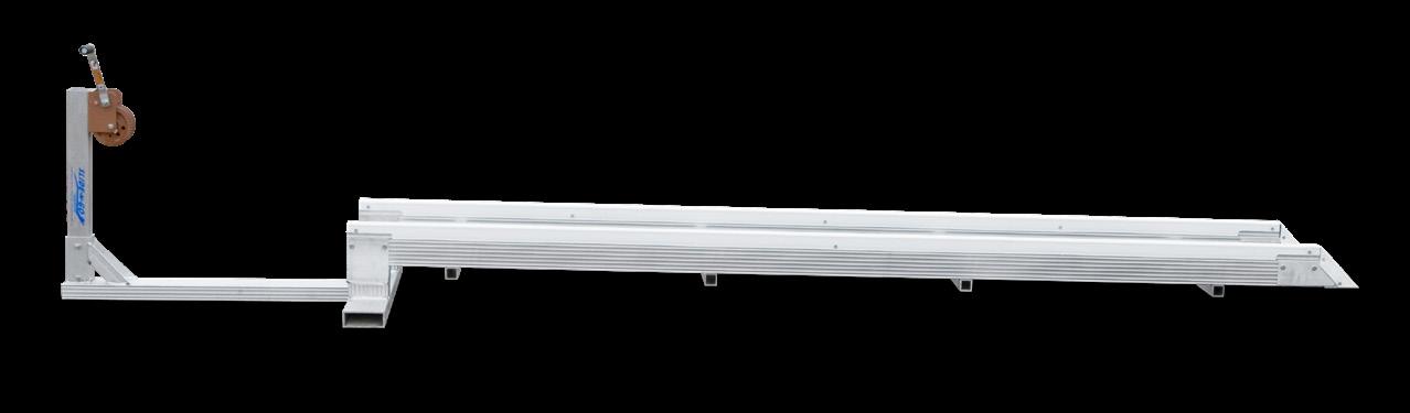 Slide-N-Go is a sweet solution for craft up to 1,200 lbs, designed to free up dock space while protecting the hull of your small boat or PWC. Made with heavyduty 2” x 5” aluminum and stainless steel hardware, it delivers high strength, low weight, and superior corrosion resistance, along with UV-resistant extruded plastic track glides and protective plastic end caps. This easy-to-assemble rail lift sets up almost anywhere in minutes and is as simple as its name—just slide your watercraft down the non-scratch plastic glides and crank it back up in seconds. The winch features a 20’ strap with hook and a 3.7:1 ratio for easy operation and quick recovery, and if you need extra length, the basic model can be quickly expanded with an add-on track extension, with sufficient cable strap included to accommodate extensions.