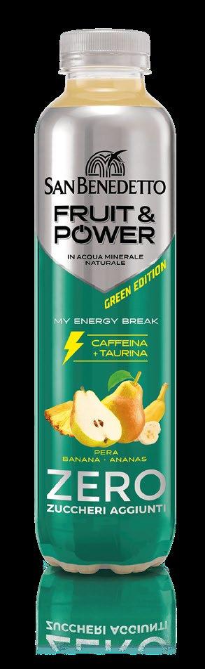 Il mix di pera, banana e ananas conferisce un profilo organolettico naturale che si distingue nettamente dai tradizionali energy drink sintetici. La linea Fruit&Power si completa con la Purple Edition (melograno, mela, mango e ananas) e la Dark Edition (pesca, banana, mela, mandarino, fragola e limone), offrendo al settore horeca un ventaglio completo per target differenziati.