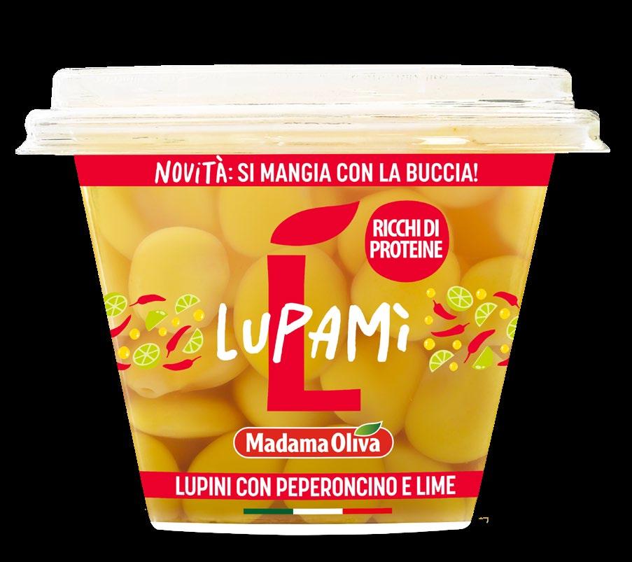 Madama Oliva presenta Lupamì, una linea completamente innovativa che segna una vera e propria rivoluzione nel consumo dei lupini. Per la prima volta, infatti, è possibile gustare i lupini direttamente con la buccia, grazie a un innovativo metodo di lavorazione che mantiene intatte le proprietà nutrizionali del prodotto eliminando la scomodità della sgusciatura. La novità più significativa di Lupamì risiede nella provenienza 100% italiana dei lupini e nell'utilizzo esclusivo di ingredienti freschi per la preparazione delle salamoie, garantendo un maggiore appeal visivo e un rilascio di sapore più intenso e duraturo. Il processo produttivo di Lupamì richiede particolare attenzione nella gestione della lupanina , l'alcaloide naturalmente presente nei lupini. Grazie alla standardizzazione del processo di lavaggio, Madama Oliva riesce a mantenere la presenza
