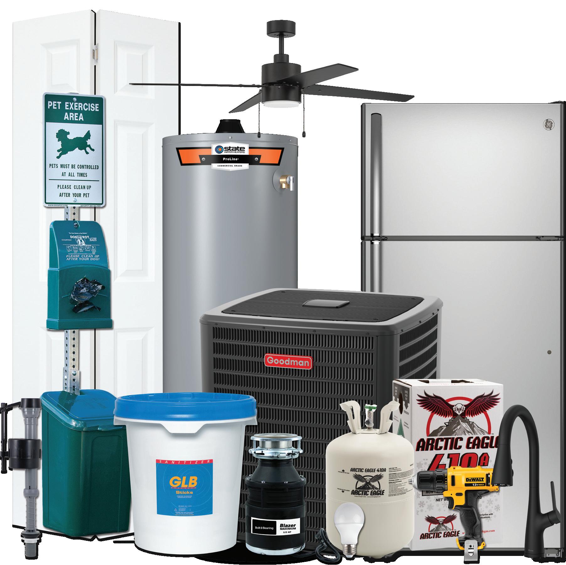 shower doors, appliances, outdoor living, mirrors, shelving, and hardware.