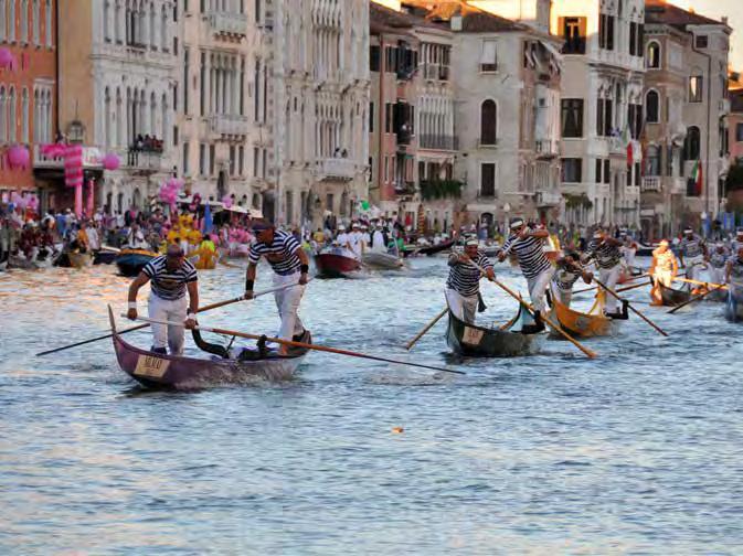 H istory, colour, roots, sports: on water, every single soul of the city of Venice can swim in harmony. The Historical Water Parade is what will draw us all to the Grand Canal, to every embankment and balcony, to every window and terrace, to immerse ourselves in an amazing, poignantly beautiful piece of immortality. A unique show! t radition p. 64