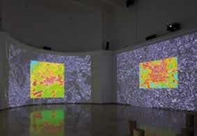 Songs of Ascension Shrine, in Sala d’Armi E dal 14 al 24 ottobre, è scultura sonora e assieme esperienza visiva multidimen-