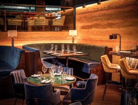 The restaurant is designed with a neutral color palette to create a serene and tranquil atmosphere ideal for a sophisticated dining experience. At the core we want a harmonious blend of sophistication with natural elements and perhaps a touch of whimsy. The decor features a remarkable finish that skillfully mimics the layered look of rammed earth and wood, bringing an organic, earthy texture, but we introduce unexpected pops of color, adding a dimension of fun ensuring that every dining experience that is also uniquely memorable.