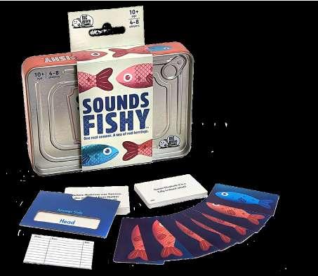 REEL IN A BRAND NEW, FAST-THINKING, BLUFFING GAME FROM BIG POTATO. IF YOU LOVE THE CHAMELEON OR BALDERDASH, YOU’LL LOVE SOUNDS FISHY.
